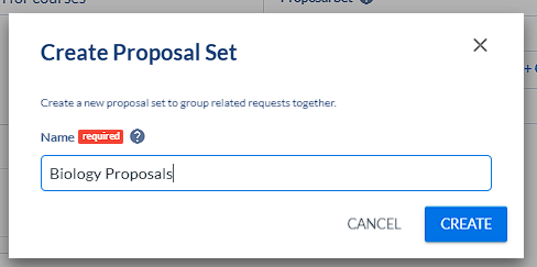 Different types of proposals can be associated with the same Proposal Set. For example: a new course and edit program proposal could be in the same Proposal Set.