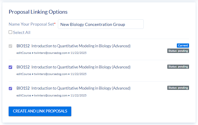 Use the text field to give the proposal set a name, select the related proposals, and click “Create and Link Proposals”.